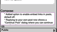 Added option to enable embed links in posts, default off. Replying to your own post now shows a Continue Post dialog where you can continue your thoughts. Updated Copland theme to be more like macOS 9...